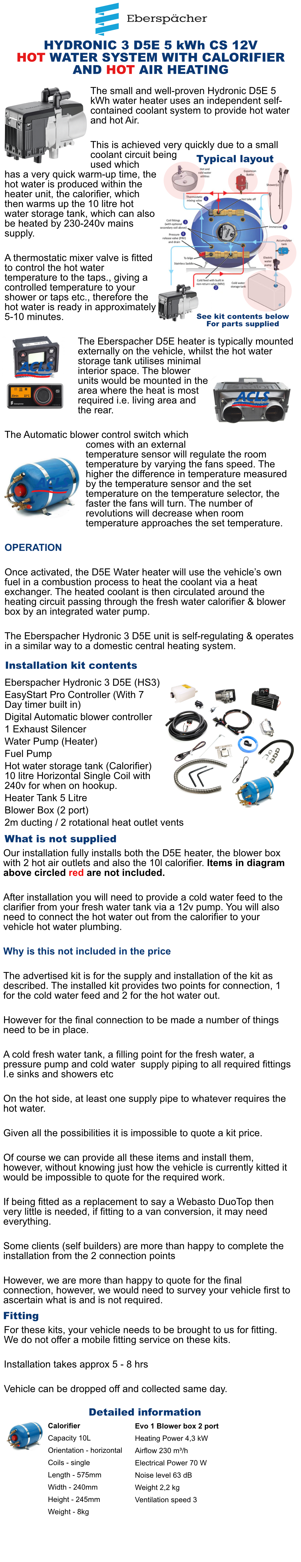 HYDRONIC 3 D5E 5 kWh CS 12V HOT WATER SYSTEM WITH CALORIFIER AND HOT AIR HEATING